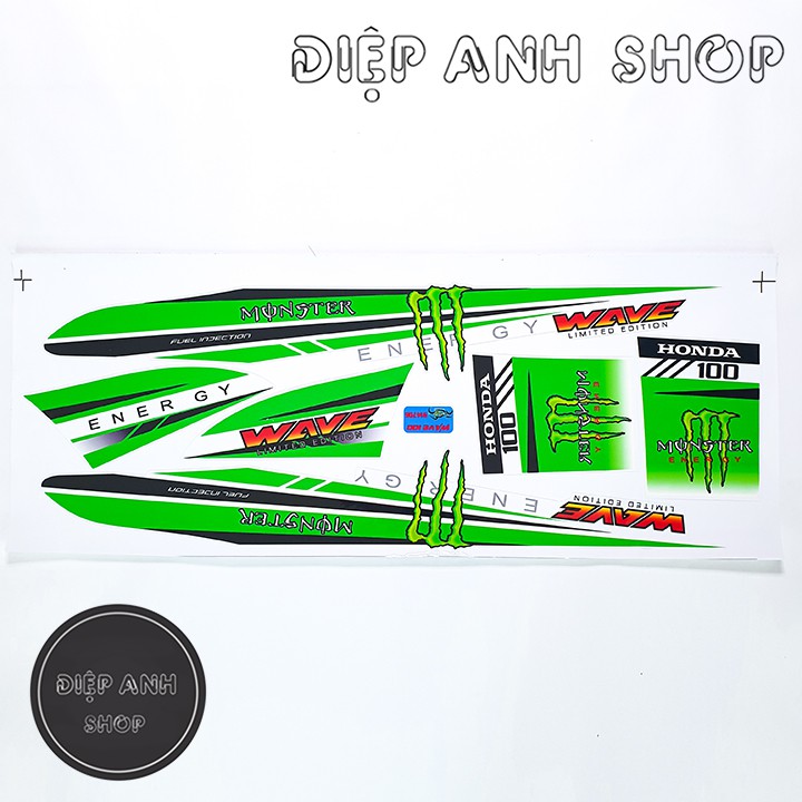 Tem xe Wave Alpha 100 MONSTER Xanh Lá ( VIDEO THỰC TẾ ) - Tem Wave chế free ship